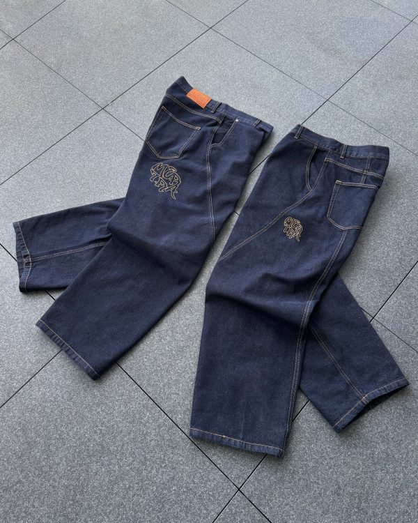 The A Mertra Navy Jeans embody the perfect balance of functionality and contemporary streetwear design, crafted for those who value both comfort and style. These pants are typically made from a durable cotton-nylon blend or heavyweight fleece, offering long-lasting wear and weather resistance. Featuring a relaxed, baggy fit with adjustable waistbands and ankle toggles, they provide a customizable silhouette that suits various urban looks. Multiple cargo and zippered pockets ensure ample storage for everyday essentials, while subtle branding and neutral colorways maintain a clean aesthetic. Ideal for city exploration, casual wear, or outdoor adventures, Mertra Pants reflect the brand’s dedication to versatility and modern utility.